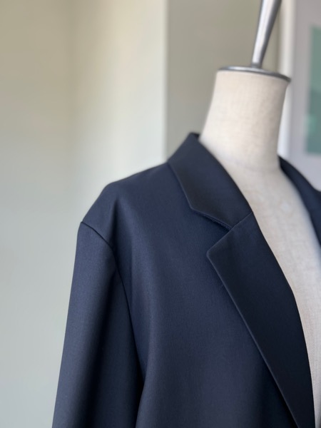 2ボタンフロント、両脇フラップポケット、内側の縫製仕様などテイラードブレザーのディテールを踏襲しながら、大人の女性が普段使いできるように軽さとシルエットにこだわっています。
