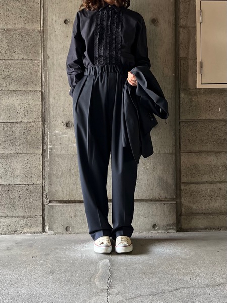メンズライクな佇まいと上品な落ち感を両立した2タックイージーパンツ。