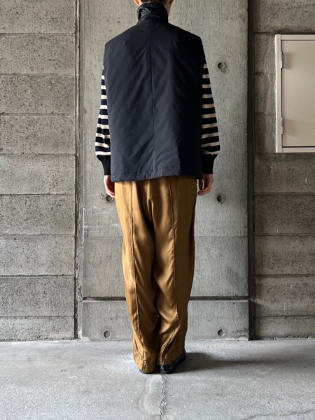袖ぐりが大きく開いているため、ワイドシルエットのトップスやブルゾンなどの上からも安心して着用していただけます。