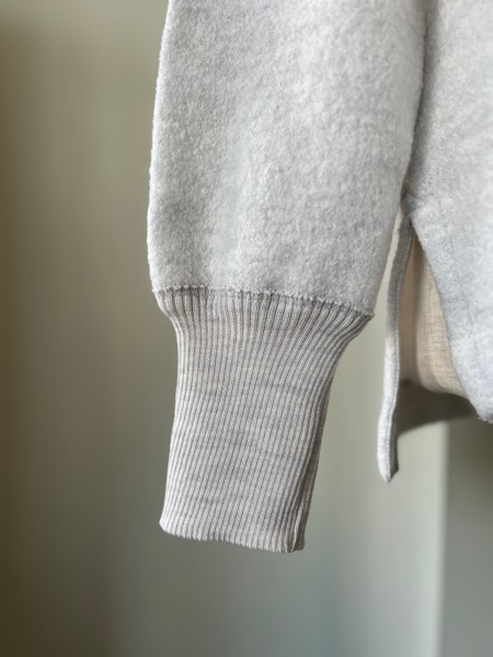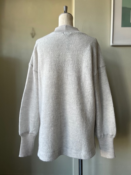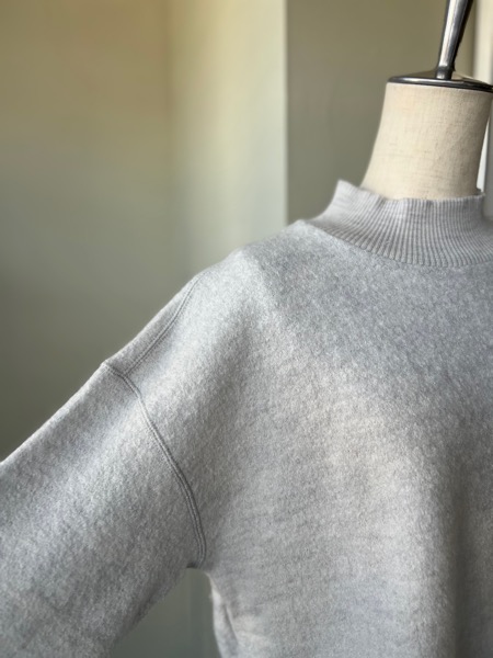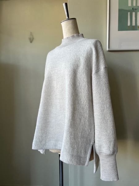 ネックと袖口にゆるめのリブを使用したモックネックデザインです。
