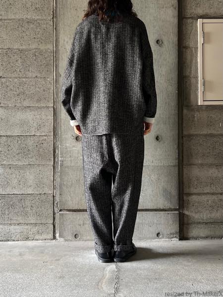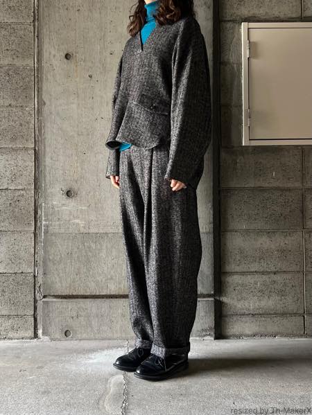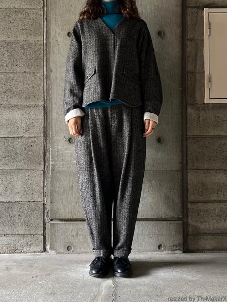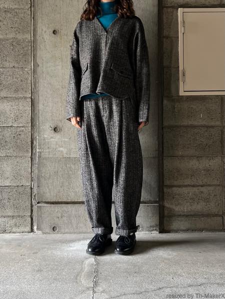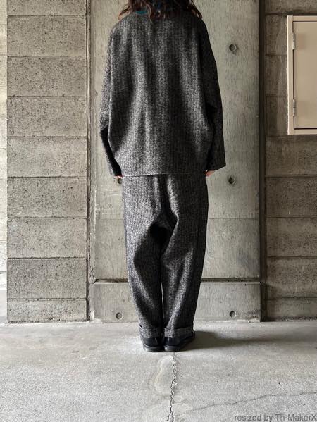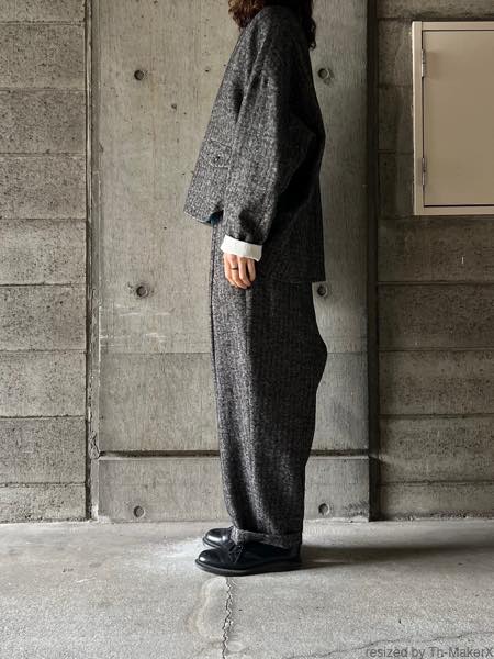 同生地のタックワイドパンツとのセットアップもおすすめです。