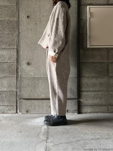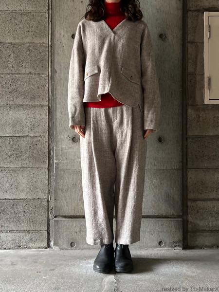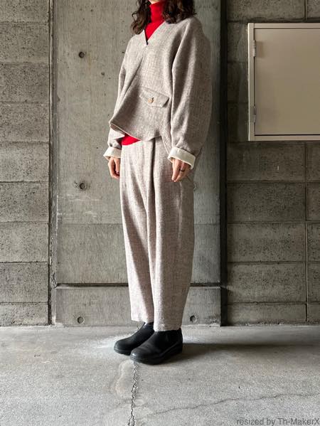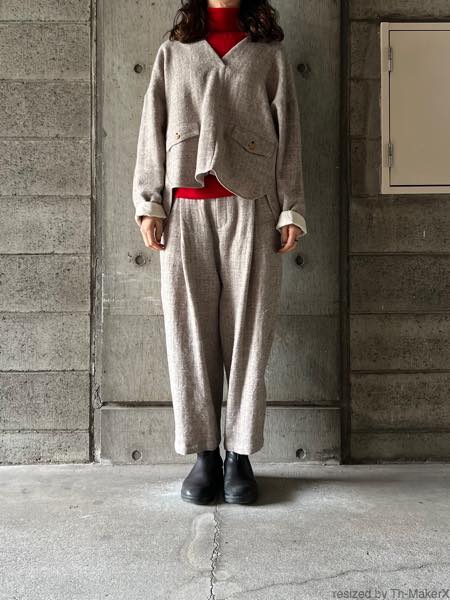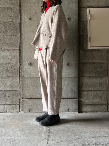 同生地のタックワイドパンツとのセットアップもおすすめです。