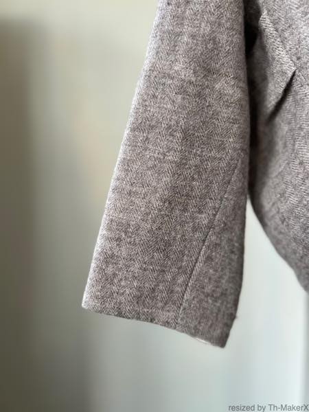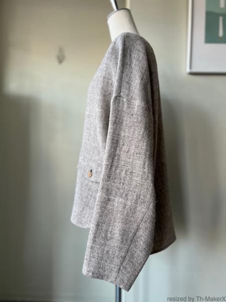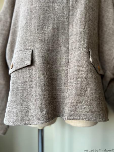 袖見返しと裾のパイピング、ポケット袋布は、シーチングコットンを使用。
