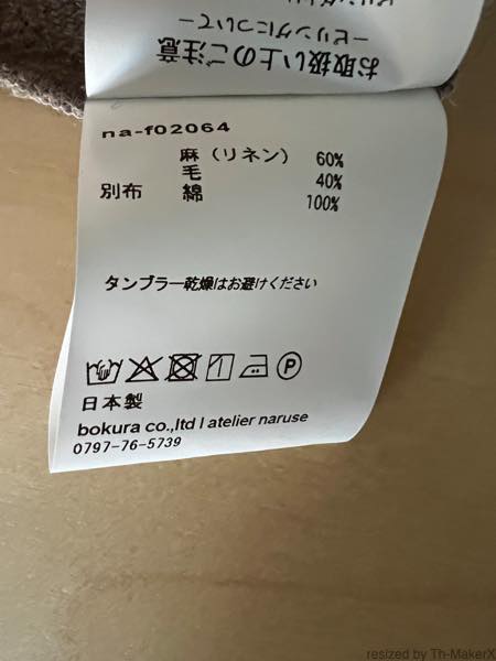 【素材】 麻(リネン)60% 毛40% 別布:綿100%