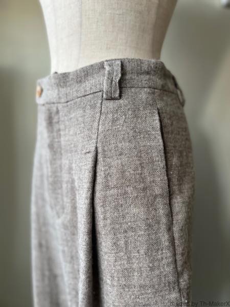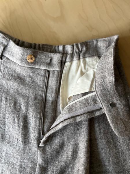 経糸に25番手のノルマンディリネン、緯糸に14番手のシェットランドウールを使用した混紡糸で織られた、荒々しさと柔らかさが共存するシェットランドウールリネンのヘリンボーン生地で作られています。