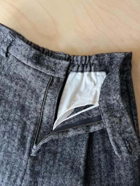 経糸に25番手のノルマンディリネン、緯糸に14番手のシェットランドウールを使用した混紡糸で織られた、荒々しさと柔らかさが共存するシェットランドウールリネンのヘリンボーン生地で作られています。