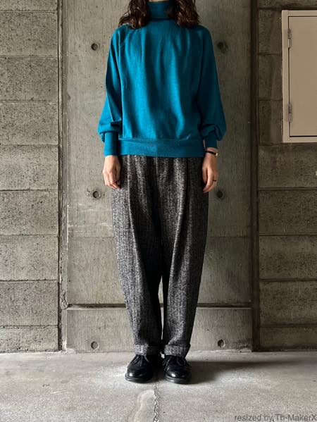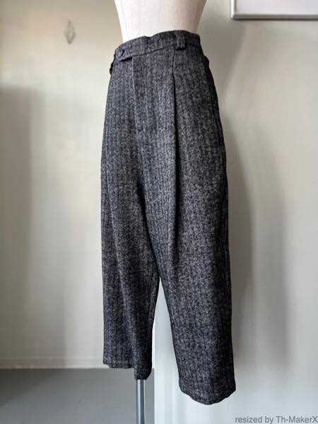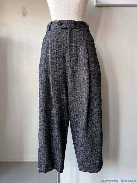 atelier naruse シェットランドウールリネンタックワイドパンツ【na-f05113】black