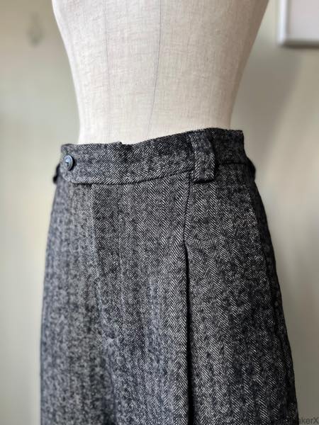 深めのタックはお腹回りまでは畳み、膝下くらいでタックが消えていくシャープな印象のデザインです。