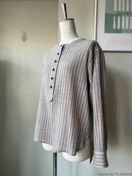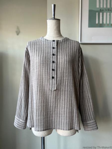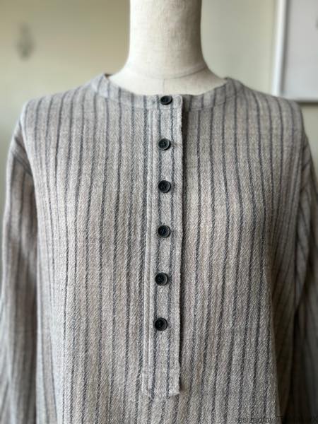 atelier naruse ウールストライプスモックブラウス【na-f02084】light gray