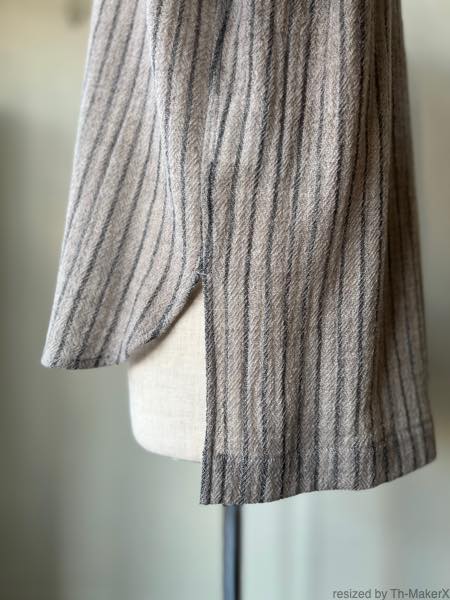 細いウール糸でざっくりと織り上げたストライプウールガーゼを使用。