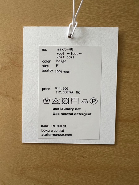 atelier naruse ウール 〜loop〜 ニットカウル【nakt-48】beige