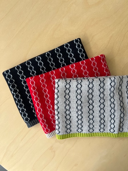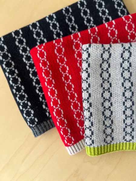 柄の部分はatelier naruse の定番柄「loop」をWジャガード編みで編み立てています。